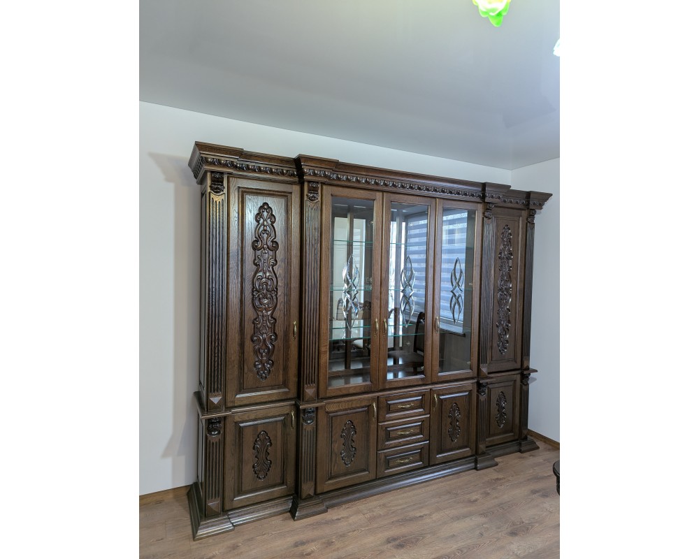 Сервант з дуба "Маестро" виконаний в класичному стилі,оздоблений ручною різьбою з елементами патини.