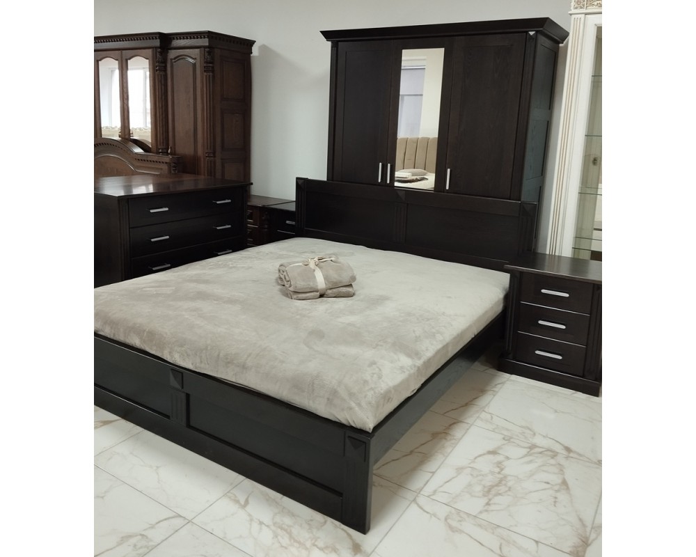 Спальний гарнітур "Хай тек" виготовлені з масиву дуба, включаючи елементи ручної різьби.