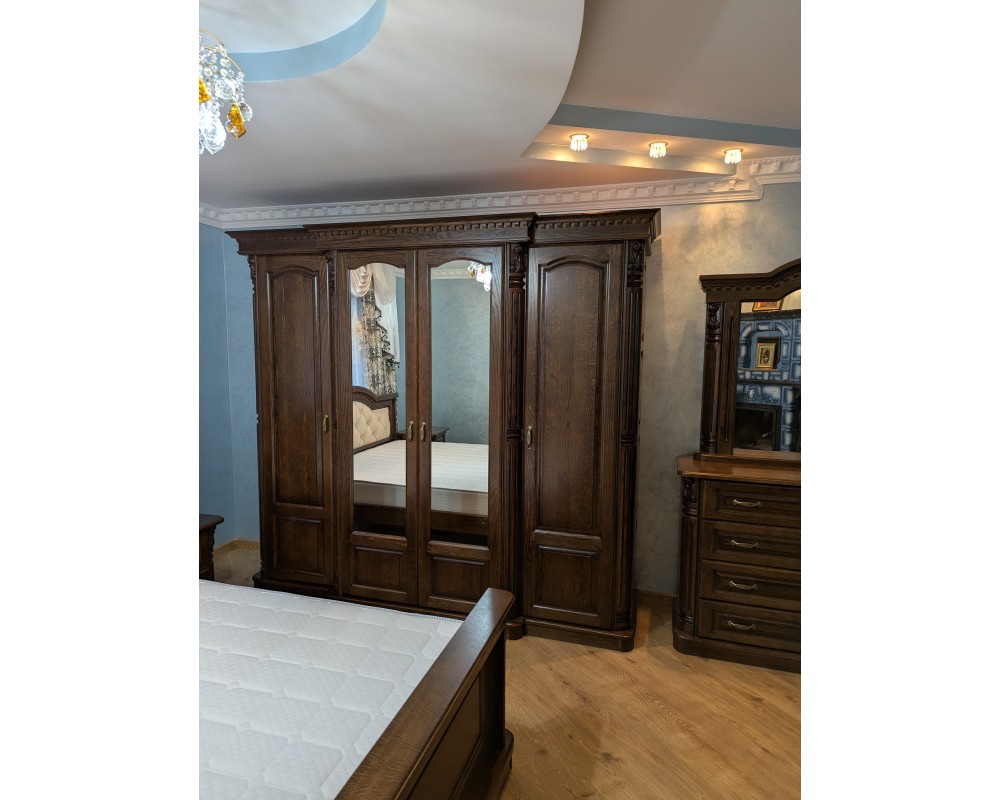 Спальний гарнітур "Престиж" виготовлені з масиву дуба, включаючи елементи ручної різьби.