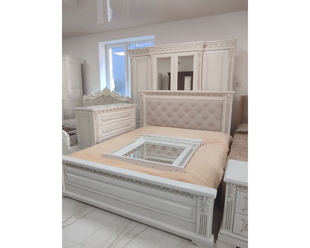 Спальний гарнітур "Соната" виготовляємо з масиву дуба, включаючи елементи ручної різьби .