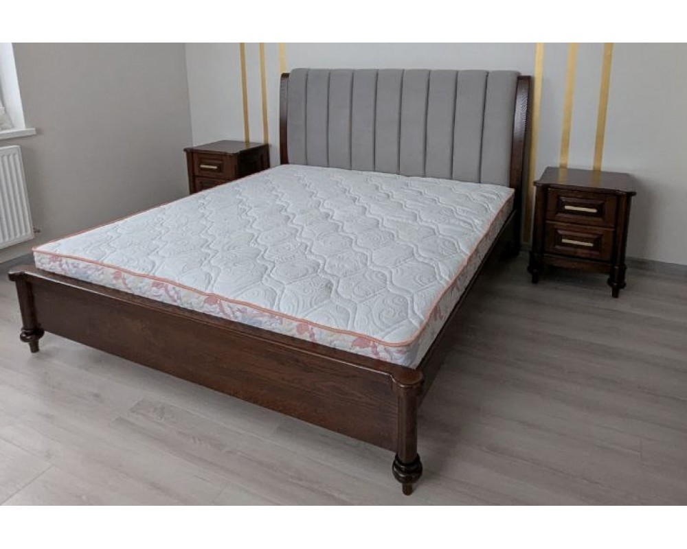 Спальний гарнітур "Ніколь" виготовляємо з масиву дуба, включаючи елементи ручної різьби та якісну шпоновану плиту.