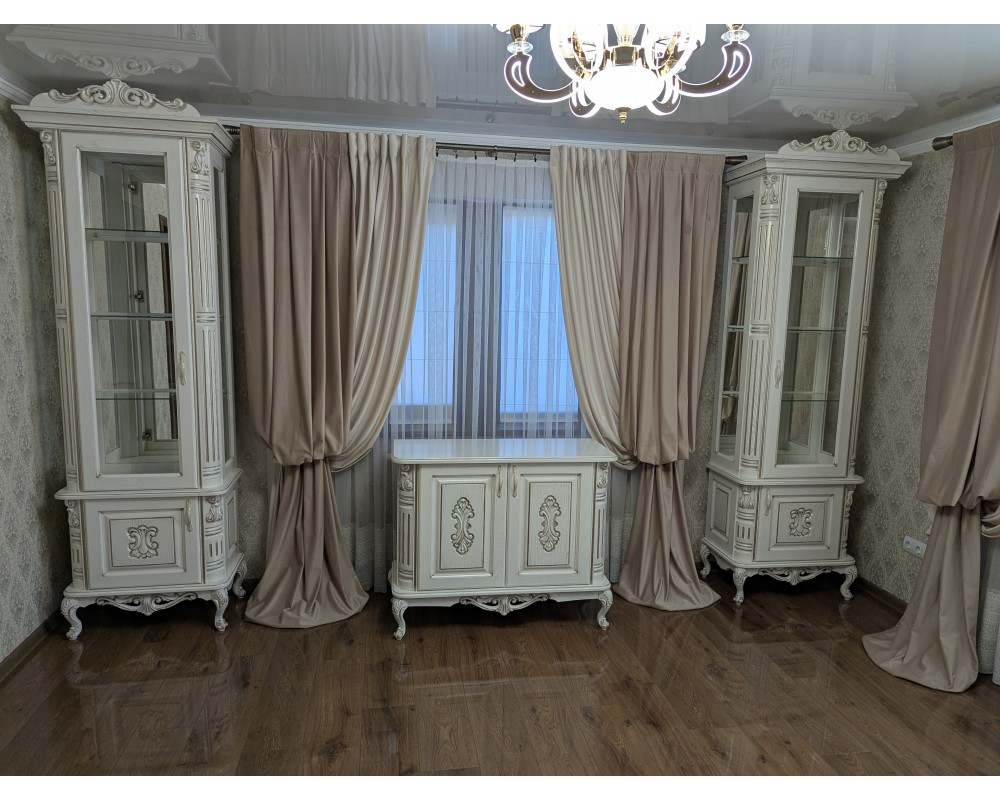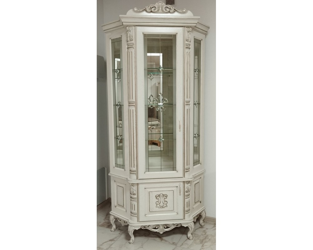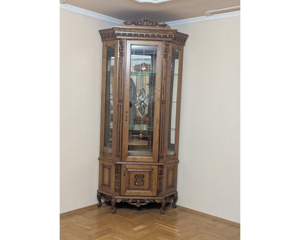 Вітальня у класичному стилі "Христина" виготовленна з масиву дуба, прикрашена елементами ручної різьби на витончених гнутих ніжках.Верх вітрини вінчає корона.